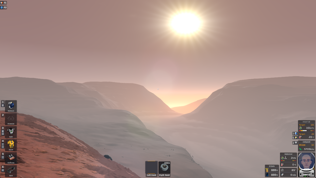 We identified early on that one of the things that made the worlds feel different was the silhouette of the horizon. For Mars we wanted to maintain its characteristic rolling small hills that build into larger ones. With the new voxel types we were able to give it rockfaces and cliffs that gives it an open epic vibe. On of the test maps we used initially was a height scan of the Grand Canyon which we really liked and we decided to integrate a massive canyon into the Mars map as well.
